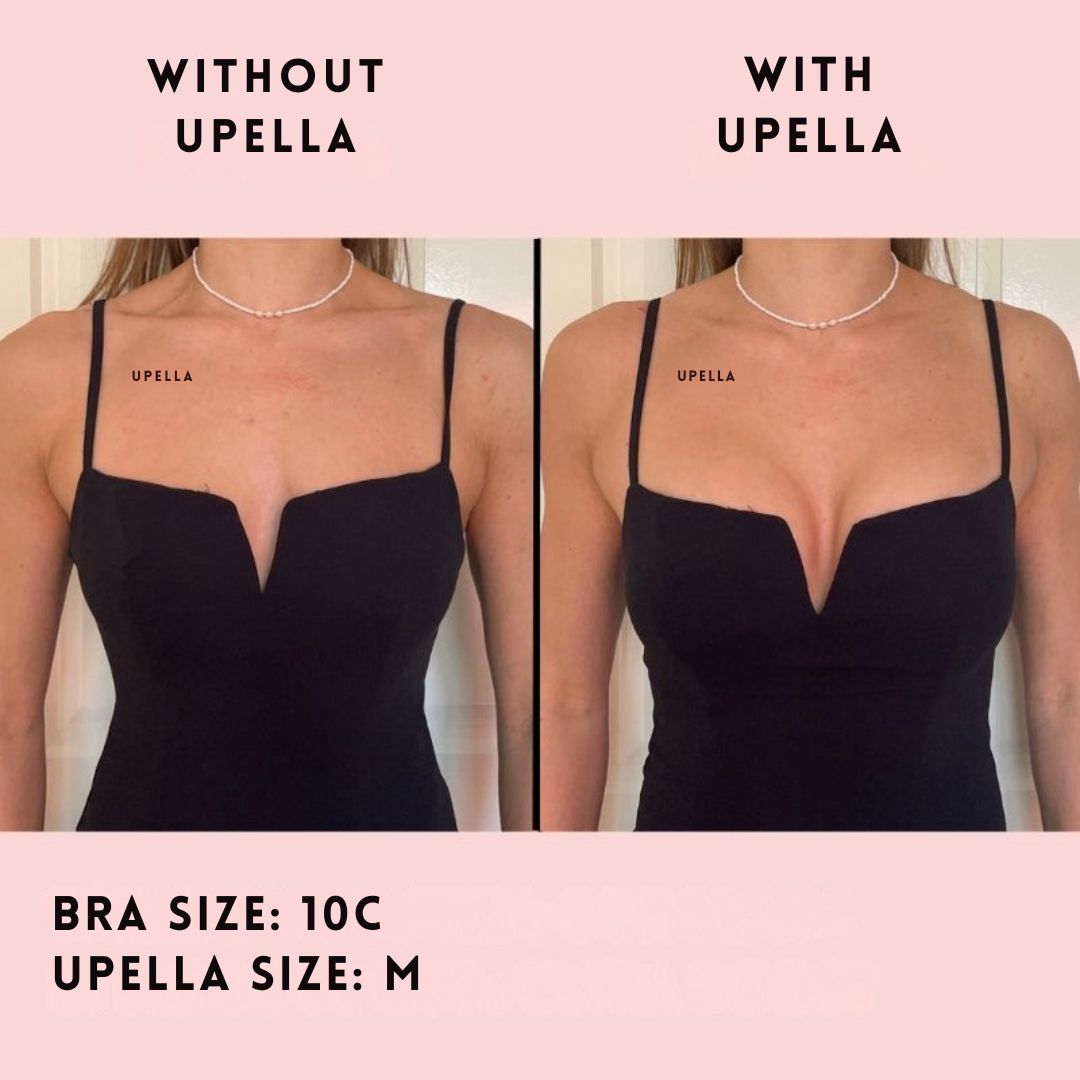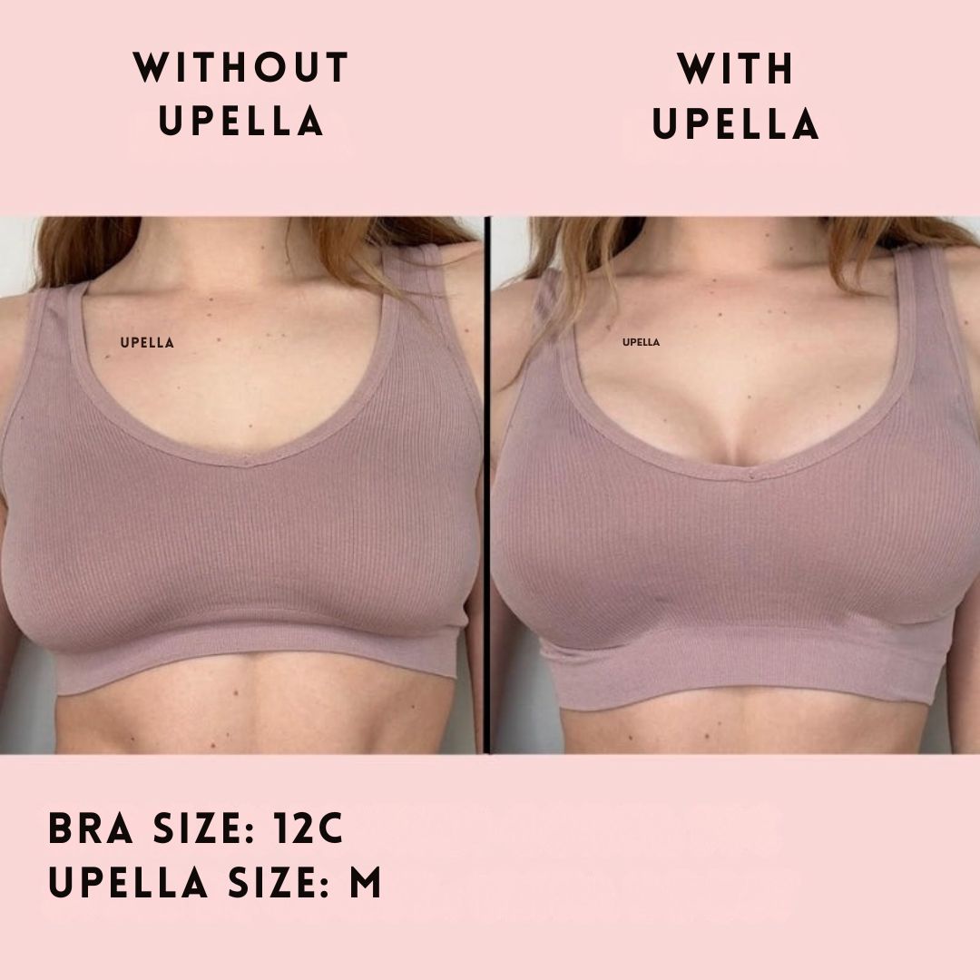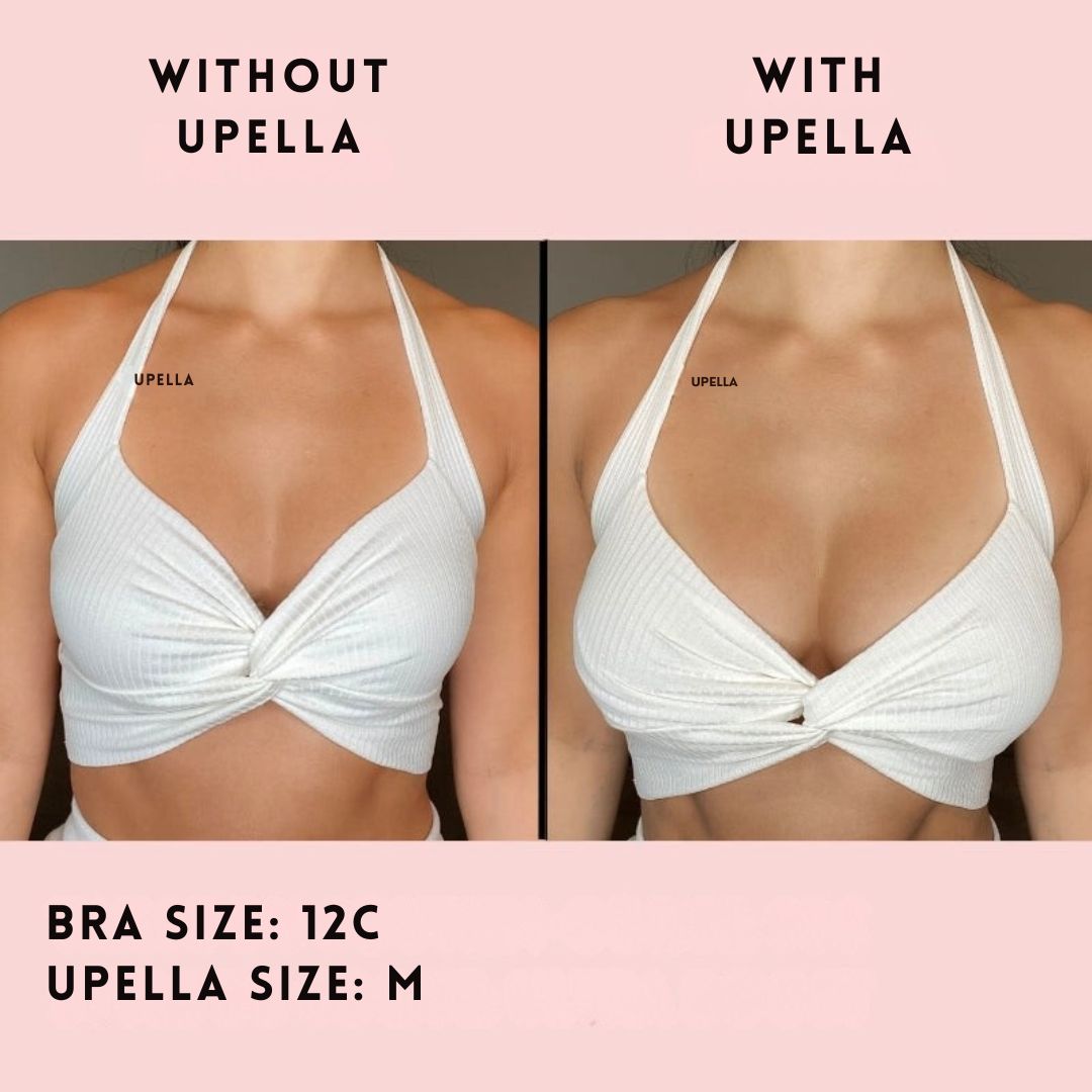 Please note that results may vary depending on breast size and shape. The effect will be similar to that of a double push-up bra. UPELLA’s padded inserts work best with natural breasts.