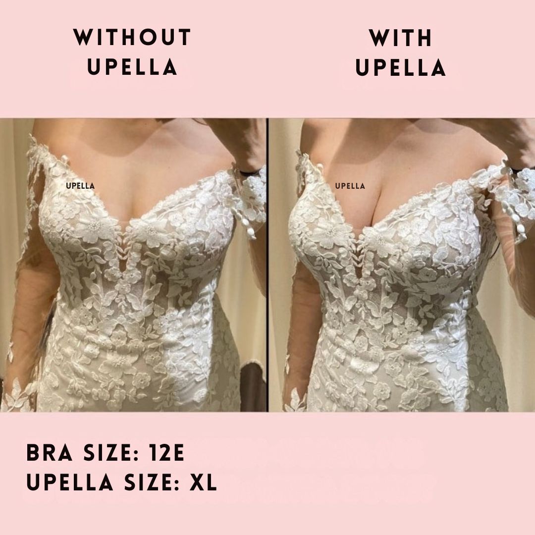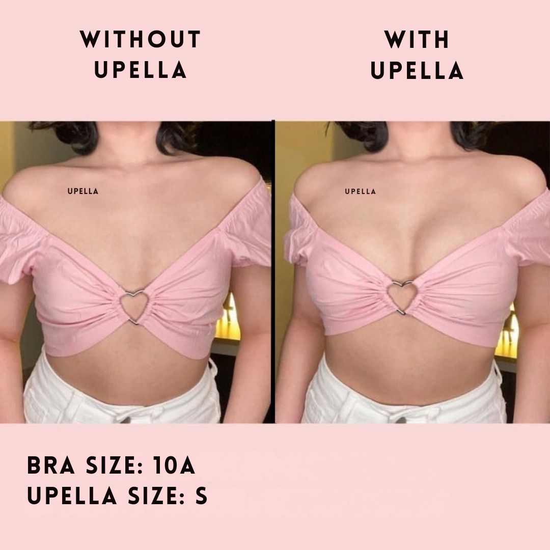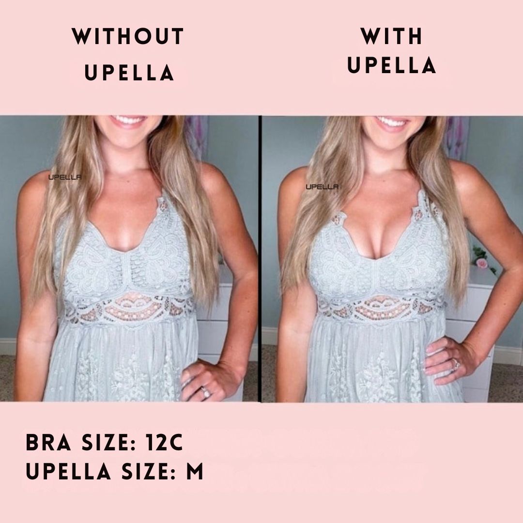 Please note that results may vary depending on breast size and shape. The effect will be similar to that of a double push-up bra. UPELLA’s padded inserts work best with natural breasts.
